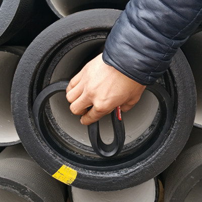 1.       對(duì)于較小規(guī)格的球墨鑄鐵管膠圈,將其彎成“心”形放入承口密封槽內(nèi)。如下圖